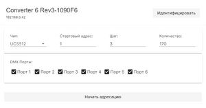 Выбор DMX-портов, на которых будет выполняться адресация приборов.