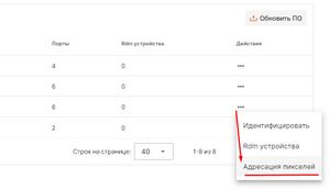 - Если выбраны не все порты, адресация выполняется только на выбранных портах.